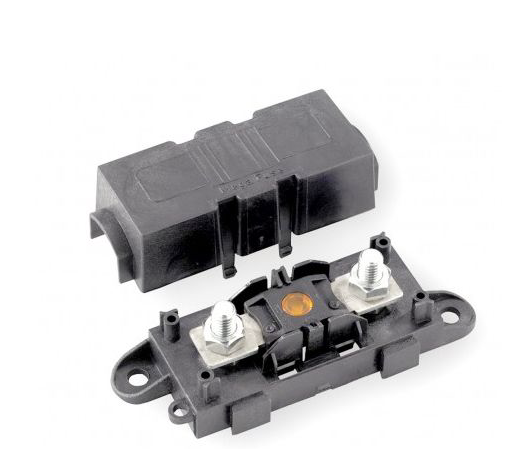De zekeringhouder is vast te schroeven op een achterplaat of schutbord met 2 schroeven (niet meegeleverd).